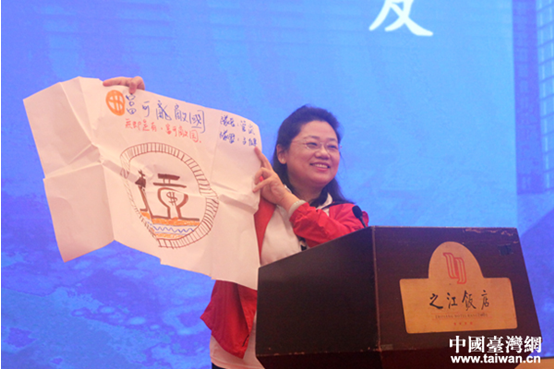 優(yōu)秀學員北京同仁堂太豐(臺灣)股份有限公司管嵐展示在培訓班學習時大家的口號。(中國臺灣網(wǎng) 王怡然 攝)