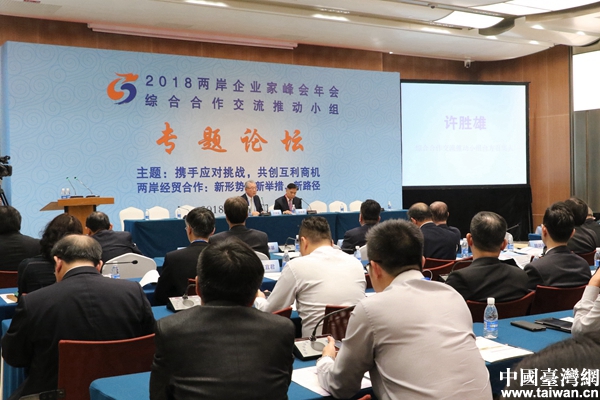 中國臺灣網12月5日廈門訊(記者 李奕均 劉川) 4日下午,主題為“攜手應對挑戰(zhàn)·共創(chuàng)互利商機”的“綜合合作交流推動小組”專題論壇在廈門國際會議中心舉行。該論壇是“2018兩岸企業(yè)家峰會年會”所舉辦的專題論壇之一,兩岸企業(yè)家代表及媒體人員近200人參與了專題論壇活動。在主旨發(fā)言中,兩岸代表圍繞“31條惠及臺灣同胞措施”展開關于共創(chuàng)互利商機的討論。