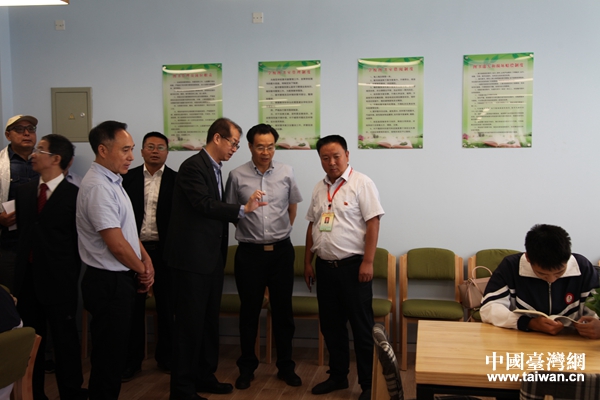 滕鴻年、張軍一行查看圖書室使用情況。(圖片來源:四川省臺辦)