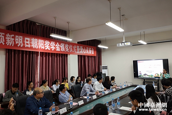 四川大學2018年頂新明日朝陽獎學金頒獎儀式現場。(圖片來源:四川省臺辦)