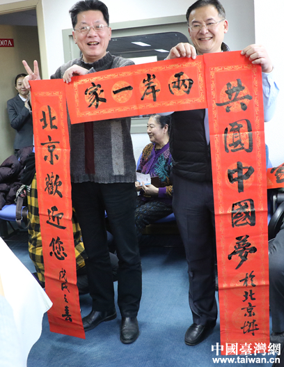 書法家向在京臺胞贈送春聯(lián)。(中國臺灣網(wǎng) 汪明珠 攝)