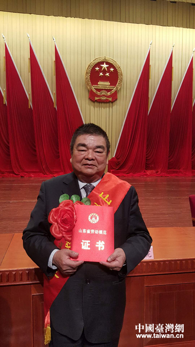 圖為劉竹承當選山東首位臺籍勞模。(劉竹承供圖)