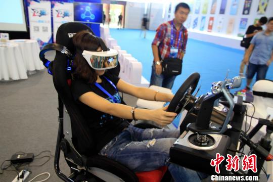 工作人員演示中國自主研發的5D體感設備,可應用于交通、航空等各個領域。 胡耀杰 攝