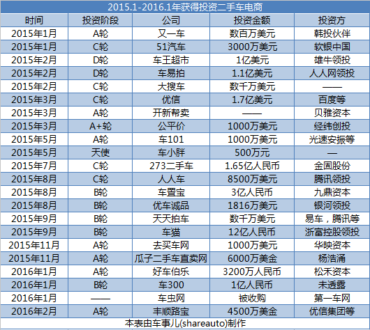 二手車電商作為香餑餑,投資機(jī)構(gòu)紛紛磨槍擦掌,相繼入場(chǎng)。但是這個(gè)行業(yè)因?yàn)榭蛦蝺r(jià)高,模式重等因素,需要交納巨額的入場(chǎng)費(fèi)。據(jù)車事兒的不完全統(tǒng)計(jì),共有23家企業(yè)獲得投資,而金額都基本上都是千萬(wàn)起步。