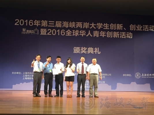6月30日,2016年第三屆海峽兩岸大學生創新創業暨全球華人青年創新活動就在上海舉行,臺灣亞洲大學參賽作品“基于服務導向之全向輪型影響伺候機器人”和臺北大學參賽作品“我的專屬代言人”分別榮獲特別獎和一等獎。