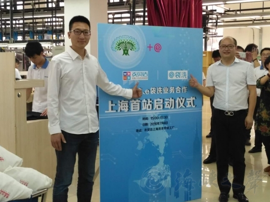 e袋洗CEO陸文勇及衣貝潔總經(jīng)理錢永春在啟動(dòng)儀式現(xiàn)場(chǎng)