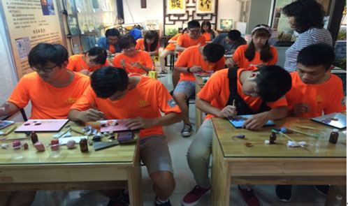 “體驗溫州發(fā)展 放飛創(chuàng)業(yè)夢想” 實習實踐活動按計劃進行。來自臺灣的同學們認真的投入到第一階段的學習中。他們被分成兩組,在浙江創(chuàng)意園的工作室,分別跟隨資深大師,進行甌塑、甌繡的學習體驗。