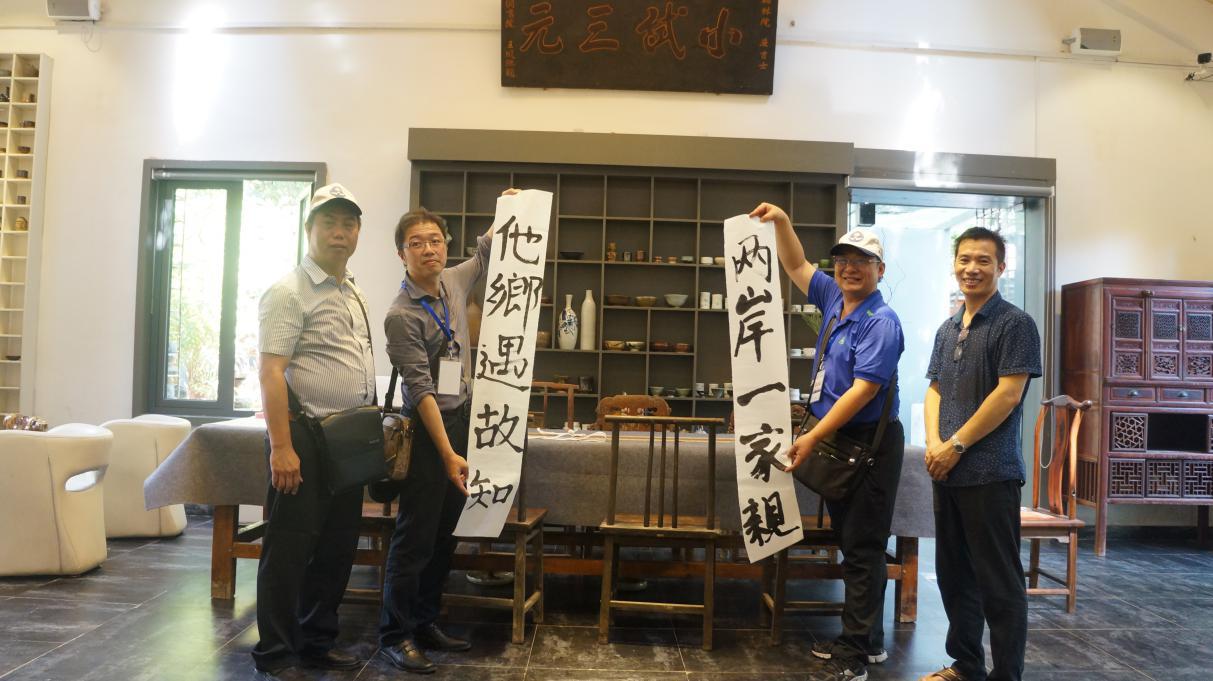 座談會前,鄂苗兩地青年朋友首先共同參觀了漢陽造文化創意產業園,在漢陽會、漢藝空間、一熹藝術館等場館參觀交流中,雙方青年深入交流。臺灣朋友對湖北的中華傳統文化底蘊和文化創意產業發展給予了高度評價,參觀中,臺灣朋友合書“兩岸一家親、他鄉遇故知”對聯,表達本次參觀的感受。
