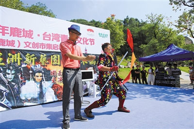 賽圍棋,兩岸選手一決高下;擺集市,青年創客切磋創意;看演出,溫州蓮花、臺南布袋戲等兩岸民間文藝表演輪番上演……作為青年文化節的重要內容之一,昨天,兩岸傳統文化表演活動與兩岸青年文創市集一一展開,活動吸引了90多名臺灣嘉賓前來參與、互動。記者在現場看到,時尚文創、民間工藝等30多家攤位逐一排開,其中包括10多個來自臺灣的文創攤位。別具風格的臺灣創意商品、潮流玩物、布藝佩飾吸引了眾多市民的駐足觀賞;具有鹿城本地特色的非遺文化、民間技藝等也得到了臺灣客人的青睞。
