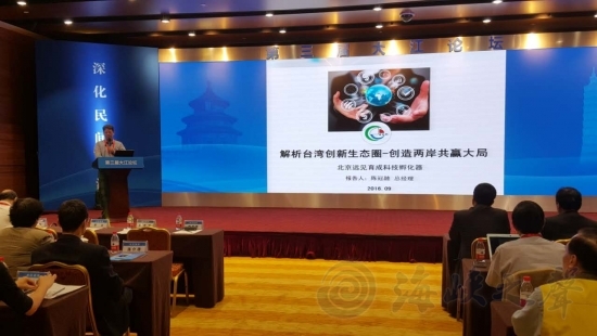 北京遠見育成科技孵化器公司、北京臺灣青年創(chuàng)業(yè)基地總經(jīng)理陳冠融發(fā)言