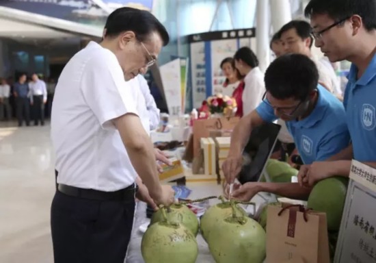 李克強(qiáng)3月22日在三亞市民游客中心考察海南創(chuàng)意旅游紀(jì)念品展區(qū)時(shí),看到一些包括大學(xué)生在內(nèi)的年輕人正在展示用當(dāng)?shù)剞r(nóng)產(chǎn)品和特色原材料制作的旅游紀(jì)念品。總理稱贊他們富有創(chuàng)意,小商品可以打造未來(lái)的大希望。他強(qiáng)調(diào),發(fā)展新經(jīng)濟(jì)、培育新動(dòng)能是遵循新發(fā)展理念、適應(yīng)經(jīng)濟(jì)發(fā)展新常態(tài)的必然選擇,也可以為改造提升傳統(tǒng)動(dòng)能創(chuàng)造必要和有利條件。