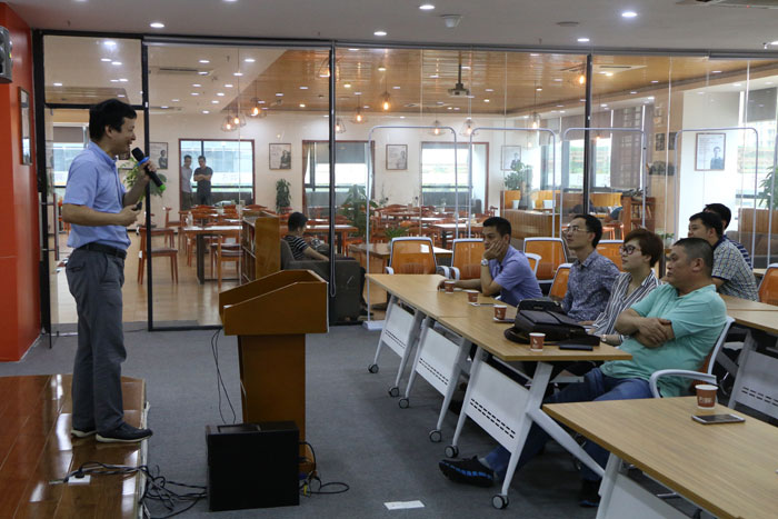 除了參觀,還有經(jīng)驗分享。一品創(chuàng)客孵化團隊——納威體育創(chuàng)始人李云開進行了創(chuàng)業(yè)經(jīng)驗分享。納威體育是集體育自媒體、移動體育電商為一體的文化創(chuàng)意類互聯(lián)網(wǎng)創(chuàng)業(yè)項目。創(chuàng)業(yè)團隊由知名微信公眾號運營專家、資深媒體從業(yè)人員和成功互聯(lián)網(wǎng)創(chuàng)業(yè)家等組成。
