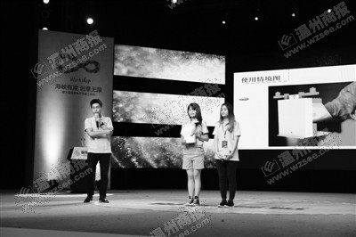 本次活動聚焦溫州主要產業和智慧健康產業兩個主題進行設計。“課題全部來自企業,使我們課題成果的實踐性和針對性明顯增強。此次有些團隊的成果已直接轉讓給企業,將成為市場化的產品。” 浙江工貿職業技術學院院長賀星岳介紹說,課題內容來源于浙江奧康鞋業股份有限公司、溫州先臨左岸工業設計公司、溫州三生無形工業設計有限公司、溫州電子信息研究院等知名企業的實際需求、研究課題與開發項目。