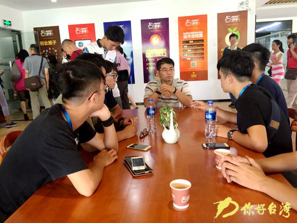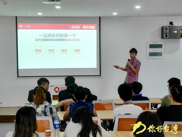 你好臺灣網7月20日消息 參加“臺灣新世代maker訓練營”活動的兩岸青年來到一品威客創客空間,參觀園區及辦公場所。一品創客招商經理陳怡添為大家介紹了他們的項目孵化及投資方面的情況。
