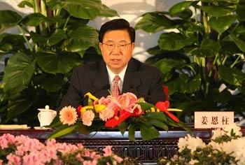 Jiang Enzhu, spokesman for the annual session of China's National People's Congress, denounces Chen Shui-bian for his decision to cease to function the "National Unification Council" and cease the application of its guidelines at a press conference in Beijing on March 4, 2006. [Xinhua Photo]