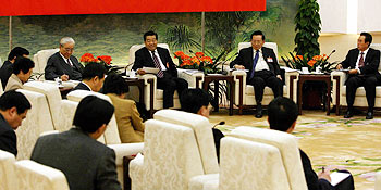 The panel discussion was held on the sidelines of the ongoing annual session of the National People's Congress, the top legislature, to examine the work report delivered by Chinese Premier Wen Jiabao and the draft outlines of China's 11th Five-Year Plan on the national economic and social development between 2006-2010. |