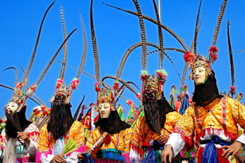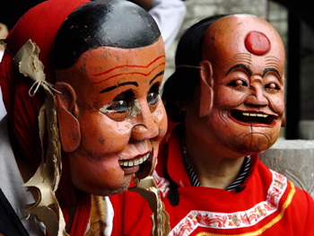 Undated file photo shows a performance of local opera "Nuoxi" in Yinjiang, southwest China's Guizhou Province. [Xinhua Photo]