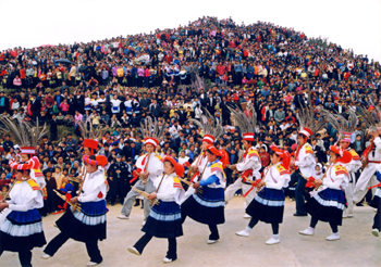 Undated file photo shows a performance of lusheng (reed pipes) dance in Shuicheng, southwest China's Guizhou Province. [Xinhua Photo]