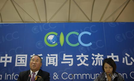 Xie Zhenhua, vice-minister of the National Development and Reform Commission of China, speaks at a press conference held in Copenhagen, Denmark, Dec. 7, 2009.(Xinhua/Zhang Yuwei)