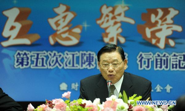 Chiang Pin-kung, chairman of the Taiwan's Straits Exchange Foundation (SEF), speaks during the press conference, in Taipei, southeast China's Taiwan, June 27, 2010. A delegation led by Chiang Pin-kung will arrive at Chongqing on Monday for the 5th round of talks with the mainland's Association for Relations Across the Taiwan Straits (ARATS), with the much-anticipated Economic Cooperation Framework Agreement (ECFA) and an agreement on intellectual property protection likely to be signed. (Xinhua/Wu Ching-teng)
