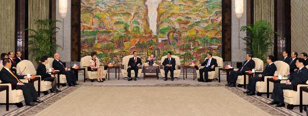 Hu Jintao, general secretary of the Communist Party of China Central Committee, meets with Taiwan dignitaries in Shanghai Thursday, who are here to attend the World Expo opening ceremony. (Xinhua Photo)