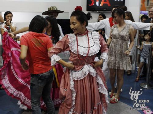 The performance drew big applauses from viewers and some even followed the steps of Cumbia dancers on the stage. A 3D film about Colombia's sceneries and heritages was also screened at the pavilion.
