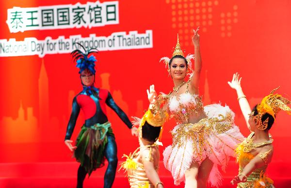 Thai actresses perform at the ceremony to mark the National Pavilion Day for Thailand at the 2010 World Expo in Shanghai, east China, Sept. 5, 2010. (Xinhua/Li Baishun)