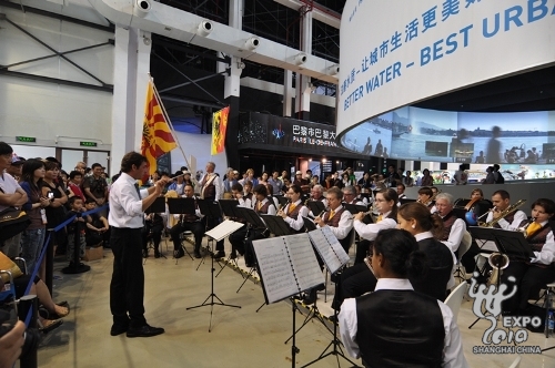 The Meyrin-Geneva Municipal Brass Band entertained visitors at the Geneva-Zurich-Basel Pavilion with a fusion of classic, jazz and modern rhyme yesterday.