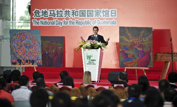 Pedro Barnoya, commissioner general of Guatemala, addresses the ceremony to mark the National Pavilion Day for the Republic of Guatemala at the 2010 World Expo Park in Shanghai, east China, Sept. 15, 2010. (Xinhua/Yang Guang)