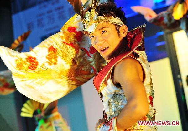 An artist dressed in traditional Japanese costume performs in Japan Industrial Pavilion at the World Expo Park in Shanghai, east China, Sept. 28, 2010. (Xinhua/Yang Guang)