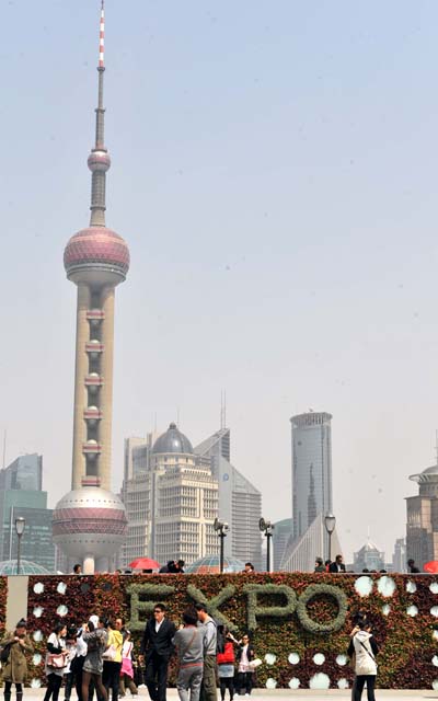 Tourists visit the Bund of Shanghai, east China, April 29, 2010. As the opening of the World Expo draws near, tourists from at home and abroad pour into Shanghai for sightseeing. (Xinhua/Zhu Zheng)