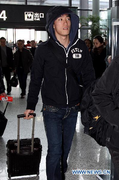 China's 110m hurdlist Liu Xiang walks in the airport as he leaves for Beijing for the Fourth Session of the 11th National Committee of the Chinese People's Political Consultative Conference (CPPCC) in Shanghai, east China, March 1, 2011. The Fourth Session of the 11th CPPCC National Committee will open in Beijing on March 3. (Xinhua/Fan Jun)