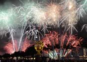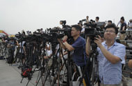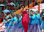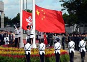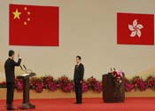 Chinese President Hu Jintao (C, front) sings the song "Ode to the Motherland" with performers during an evening gala celebrating the 15th anniversary of Hong Kong's return to the motherland in Hong Kong, south China, June 30, 2012.