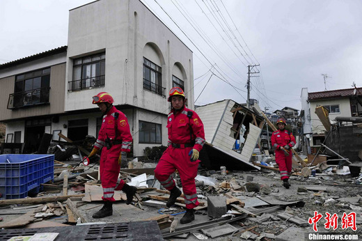 3月15日下午,幾天前抵達(dá)日本巖手縣大船渡市的中國國際救援隊(duì)隊(duì)員在進(jìn)行搜救。大船渡市緊鄰海港,是此次日本大地震中受災(zāi)最嚴(yán)重的地區(qū)之一。中新社發(fā) 侯宇 攝