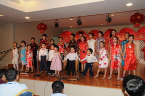 晚會現場張燈結彩,由華人華僑和中資企業代表表演的歌舞、小品、樣板戲、魔術等節目個個精彩,由小朋友們表演的節目猶受歡迎,獲得經久不息的掌聲。現場觀眾在一片歡聲笑語中度過了一個愉快難忘的夜晚。 |