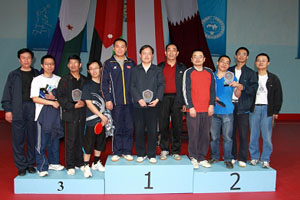 每支代表隊(duì)各由3人組成,分成2個(gè)小組進(jìn)行循環(huán)賽,每個(gè)小組的前2名進(jìn)入下一輪,進(jìn)行前四名的爭(zhēng)奪。各代表賽前都作了充分的技戰(zhàn)術(shù)準(zhǔn)備,比賽時(shí)每分必爭(zhēng),精彩的場(chǎng)面層出不窮,不時(shí)引起觀眾的喝彩。經(jīng)過(guò)近5個(gè)小時(shí)的激烈爭(zhēng)奪,使館代表隊(duì)技?jí)喝盒郢@得冠軍,華為和中石化國(guó)勘代表隊(duì)分獲二、三名。