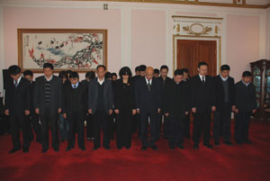 2010年4月21日,中國駐烏克蘭使館降半旗,向青海玉樹地震遇難者致哀。上午10時,使館全體館員神情肅穆,心情悲痛,為地震罹難同胞默哀3分鐘。