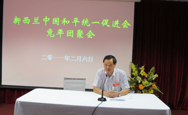 黃瑋璋會長首先致辭,感謝該會會員對會務的支持,并充分肯定了該會2010年所做的工作,最后他祝會員們在兔年里身體健康、萬事如意。廖總在新年致辭中回顧了“和統會”成立的歷程,表示當前兩岸關系的和平發展與包括新西蘭“和統會”在內的世界各地海外華僑華人的努力分不開。近年來,“和統會”在反獨促統以及支持北京奧運會、上海世博會和四川汶川、青海地震等涉及中國的大事上做了許多工作,展現了當地僑胞極高的素質和強烈的愛祖(籍)國之心。希望“和統會”今后繼續為中新關系發展以及祖(籍)國經濟社會發展等多做貢獻。