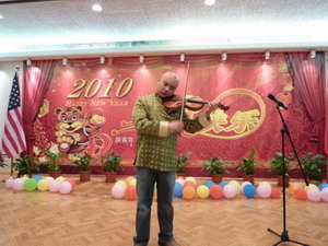 整個招待會氣氛熱烈活躍,笑語歡聲陣陣。來自加州大學洛杉磯分校(UCLA)、南加州大學(USC)、加州大學圣地亞哥分校(UCSD)、加州理工學院(Caltech)等高校的留學生們獻上了獨唱、小品、小提琴獨奏、舞蹈等精彩節目。席間的游藝活動、抽獎環節等更是將現場的歡樂氣氛推向了高潮。 |