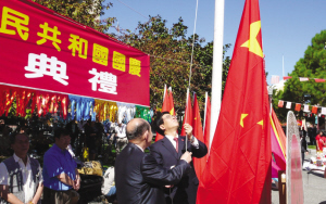 2010年9月25日中午,舊金山灣區各界華人慶祝中國國慶委員會在華埠花園角廣場隆重舉辦國慶升旗典禮,慶祝祖國61周歲華誕,駐舊金山總領事高占生應邀出席。在雄壯的《義勇軍進行曲》中,高總領事與伍璇燦顧問共同升起鮮艷的五星紅旗。舊金山灣區中國國慶委員會執行主席黃榮輝、中國海外交流協會顧問池洪湖、中國僑聯海外顧問伍璇燦、朱灼樞、關洛章等僑胞近500人出席觀禮。