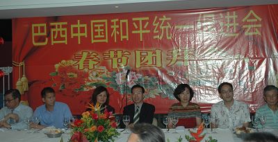 李總首先代表總領館向各位來賓致以新春祝福,并簡要回顧了過去一年中國發展及中巴關系的基本情況,特別是中國政府應對全球金融危機采取的積極措施和取得的顯著成效。他充分肯定了巴西中國和平統一促進會多年來為祖國統一、國家富強和民族振興作出的努力,希望在新的一年中繼續發揚愛國愛鄉精神,團結廣大僑胞,為促進祖國建設、實現統一大業和推動中巴關系發展做出新的貢獻。