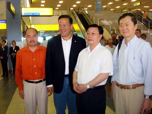 中新網2月21日電 據巴西《南美僑報》報道,“文化中國 四海同春”2010年春節南美慰僑訪問演出團,在圓滿完成了巴拿馬的訪演任務后,于當地時間20日中午離開巴拿馬城,啟程飛往秘魯首都利馬。在巴拿馬的托庫門國際機場,中國海外交流協會副會長馬儒沛與巴拿馬第一副總統兼外長薩穆埃爾·萊維斯·納瓦羅見了面,并且雙方進行了友好的交談。