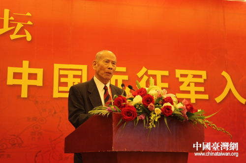 7月9日,“黃埔論壇 紀念中國遠征軍出征70周年”在昆明舉行,黃埔軍校同學會會長林上元在論壇致辭。(中國臺灣網 齊曉靖 攝)