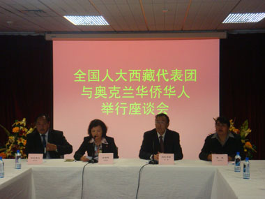 向巴平措主任介紹了十一屆全國人大三次會議和中央第五次西藏工作座談會情況、西藏目前的經濟社會發展形勢,以及代表團此次訪問澳大利亞和新西蘭首都惠靈頓的情況,高度評價奧克蘭華僑華人在反對達賴竄訪新西蘭、向當地政府及各界宣傳西藏所做的工作,感謝當地僑胞關心支持西藏發展建設,希望各位僑界代表多為西藏的經濟社會發展建言獻策。