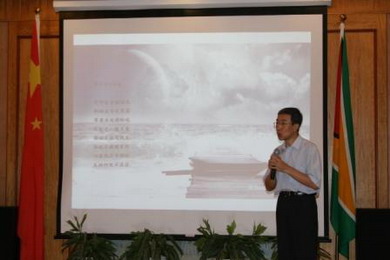 張大使還積極評價援圭醫療隊和援圭青年志愿者的工作。他說,大家遠離祖國、遠離親人,帶著祖國人民對圭人民的友好情誼來到圭亞那,耐得住寂寞、經得起考驗,以實實在在的工作贏得了圭政府和人民的贊許和肯定。張大使勉勵大家以世博會為契機,在各自崗位上繼續努力,積極進取,展示中國的嶄新形象,為中圭友誼的發展再續新篇。
