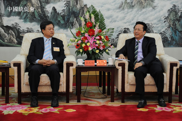 全國人大常委會副委員長、中國和平統一促進會副會長陳昌智(右)與訪問團團長蔡武璋(左)