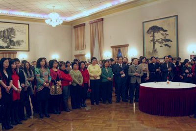 2011年1月27日晚,駐蒙使館代辦王?翟谑桂^舉行旅蒙華僑、在蒙中資企業代表新春招待會,旅蒙華僑協會會長白雙占、僑協常委、代表,以及中資企業代表共150多人應邀出席。