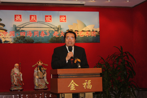 許又聲副主任在僑界歡迎宴會上致辭 許又聲副主任、胡山總領事等在僑界歡迎宴會上合影