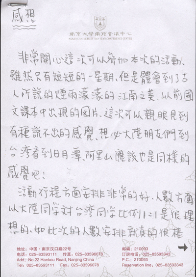 臺灣同學活動感言(圖)