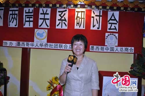 墨西哥華人華僑社團聯(lián)合總會執(zhí)行會長初海燕在發(fā)言中指出,胡錦濤主席在十七大的報告中明確表示,“支持海外僑胞、歸僑僑眷關(guān)心和參與祖國現(xiàn)代化建設(shè)與和平統(tǒng)一大業(yè)。”我們旅居海外的華人華僑雖然身居異地,但心系祖國,渴望和平統(tǒng)一。我們在為生存,為拓展而終日奔波,辛勤拼搏的同時,有兩件事是我們最關(guān)心的:一是祖國的繁榮昌盛;二是祖國的和平統(tǒng)一。第一件事,我們已經(jīng)看到了中國的經(jīng)濟日新月異的發(fā)展,民富國強,作為東方巨人屹立世界民族之林;第二件事,祖國和平統(tǒng)一大業(yè),因為臺獨勢力不會自己退出歷史舞臺,不會輕易踏上祖國統(tǒng)一的道路,所以祖國和平統(tǒng)一大業(yè)征途漫漫,任重道遠,還需要我們繼續(xù)不懈的努力。”